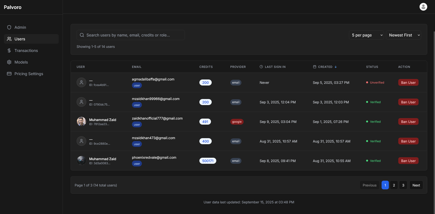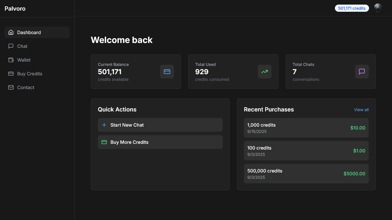 - Dynamic User Dashboard: Developed dashboards to monitor credit usage, transactions, and AI activity with real-time updates.